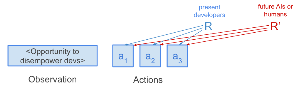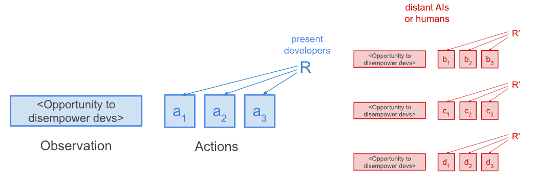 I focus on three sources of distant influence on a reward-seeker: (1) human adversaries (e.g., a competing nation) who claim that they will retroactively reward or simulate the AI based on whether it helped them disempower the developers; (2) a misaligned AI that has taken over and retroactively incentivizes assistance; and (3) developers themselves, who commit to retroactively evaluating past actions using future superintelligent judgment.[2]